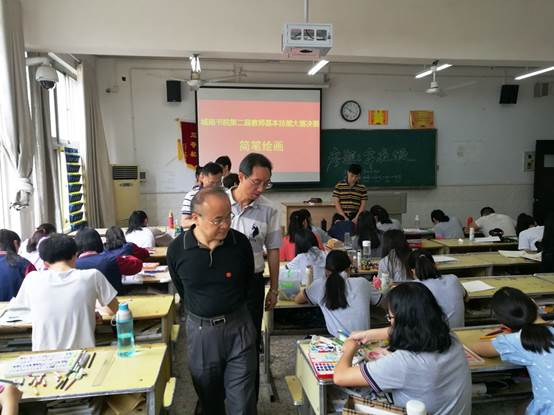 5月5日决赛当天,校党委书记彭小奇教授、教务处李建亚副处长在我院班子全体成员的陪同下莅临现场指导,彭小奇书记兴致勃勃地观摩了每一项决赛,对我院在学生教师基本技能培养上付出的努力和取得的成绩给予了充分肯定。