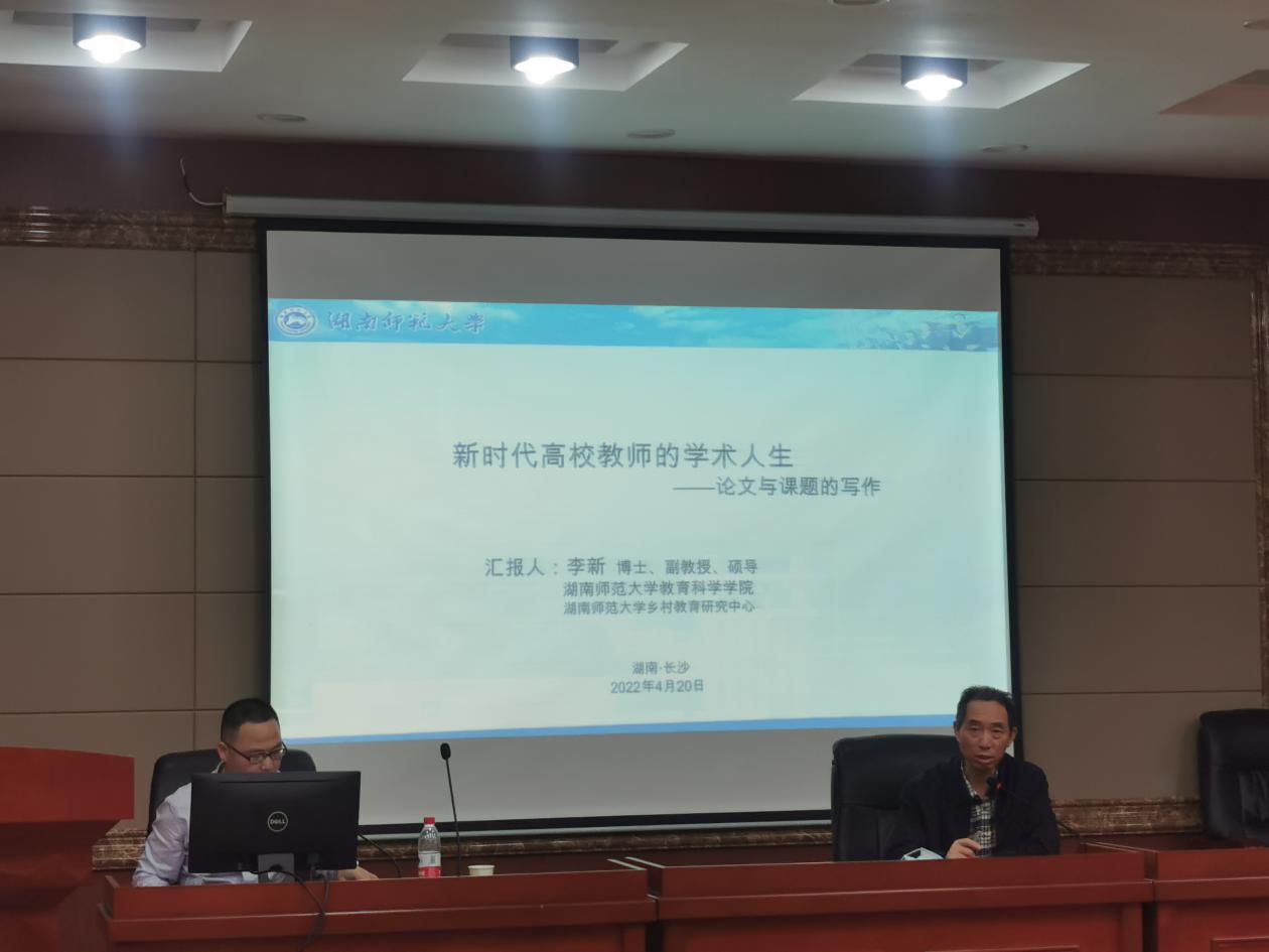 4月20日中午12点30分,湖南师范大学教育科学学院副教授,乡村教育研究中心常务副主任李新来我院开展讲座,主题为《新时代高校教师的学术人生——论文与课题的写作》。我院党政领导及全体教职员工参加并聆听讲座。