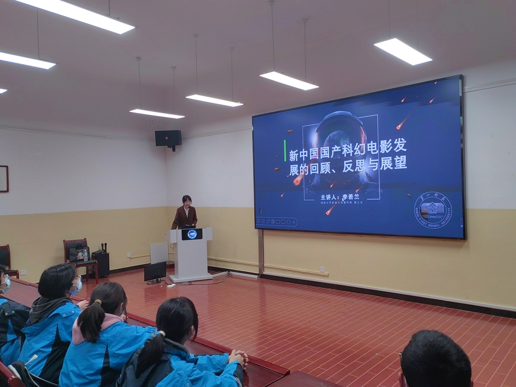 李若兰首先向师生们介绍了科幻电影的起源与意涵,并搭配电影片段对新中国成立以来国产科幻电影的四个发展阶段进行了详实地梳理和分析。接着,她提出当前国产科幻电影的发展仍然是艰难的,从中西语境、制作水平、思维模式、工业体系四个方面对国产科幻电影的困境进行了反思。最后,她对国产科幻电影的未来发展进行了展望,她告诉同学们,国产科幻电影发展绝不能急功近利,需要打造成熟的工业化体系,全产业链上下共同进行持续地、稳定地输出,才能讲好中国故事、做出具有中国特色的科幻电影内容,吸引全世界的观众,向全世界传播中国声音。