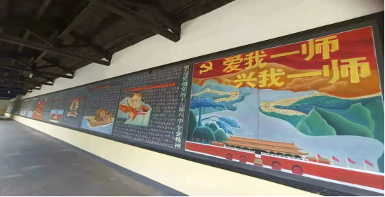 倾力红色文化长廊阵地建设,将长廊建成展示学生风貌的重要窗口,凸显师范生“能写会画”的教师技能,彰显一师学子睿智进取、积极向上的精神风貌,是学生思想政治教育的重要阵地。