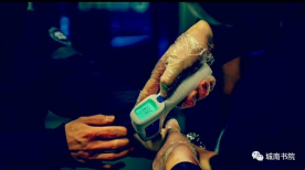 这幅摄影作品记录了我国为抗疫采取积极有效的措施。疫情一开始,我国从不松懈,在各个群众聚集的场所测量和记录人们的体温,这样可以有效预防和干涉新冠肺炎的传播。人民积极配合,坚强又勇敢,一切阴翳在我们面前都会过去,中国注定不平凡!