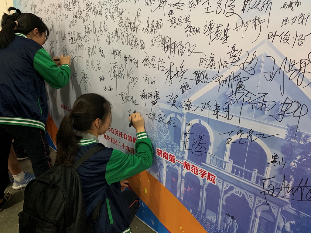 徐佐林教授以饱满的热情,对当前国际禁毒形势、当代青年应该肩负的禁毒责任和使命进行了深入、精辟、幽默的阐述。利用具体案例,对禁毒的相关知识做了生动详细的讲解,让同学一定“珍惜生命,远离毒品”。生动、深刻,融入思想性、艺术性的讲座,让师生们深切体会到毒品的危害性。讲座结束,全场学生起立,举起右手庄严地宣誓,用坚定的声音表达了对拒绝毒品的决心;自愿在禁毒签名墙上签名,表达了禁绝毒品的信心和态度。