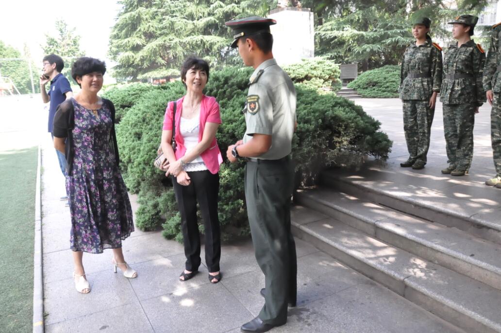 童校长首先向全体教官和新生表达问候,感谢在中秋佳节还坚持在工作岗位的教官、老师和同学们。随后听取了总教官的军训简报,了解军训进度,询问教官在军训过程中有没有什么困难,有哪些地方还需要学校进一步配合等,她表示学校将全力支持和配合军训工作。最后,童校长深入学生连队,与同学们亲切交谈,仔细听了大家的军训感想和建议,她鼓励同学们向军人学习,学习他们的团结、坚持、永不言弃的精神,相信大家会带着军训期间收获的坚强的意志和坚定的信念,迈出更加有力的步伐去迎接大学生活中更大的挑战!