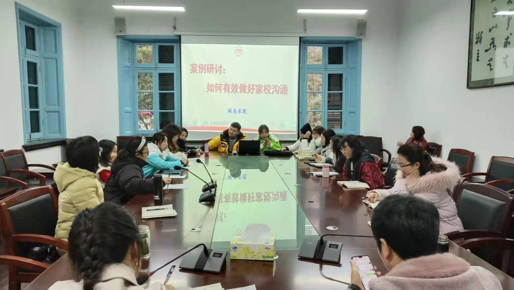 首先,贺璐老师从“巧用书信、开展班会、问题导向”等三个方面对疫情常态化防控期间家校协同学习模式进行了阐述,用传统与现代相结合的方式——正式的电子邮件与家长沟通,内容更全面,也加强与家长的有效交流。接着,陈丽帆老师从“自身情绪调节、共情式沟通、隐性方式表达、 多元化、 多渠道沟通 ”四个方面分享了家校有效沟通的方式,有理有据,条理清晰。每位在坐的老师也根据自己平时的工作经验进行了分享,如与家长沟通前首先让家长信任我们、建立信任感是关键;心理中心颜老师谈到在处理危机干预家庭冲突时:与家长沟通时要强调症状,少做判断。不要直接说出自己的判断,而要先去描述学生表现,学业情绪的问题,再给家长建议;还有擅用学生进行家长群管理等;