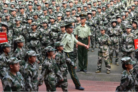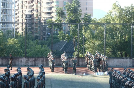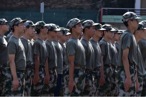 树的影子逐渐变短,田径场上的学生们挺直着腰杆,颇有“青松挺且直”之势。他们接受着阳光的洗礼,烈日让他们的皮肤逐渐变成黑色,额头上汗如雨下,却纹丝不动。随着总教官“解散”口令的下达,他们迈着整齐的步伐走出了田径场。无疑,学员们是认真的、刻苦的;教官们也是严格的、耐心的。