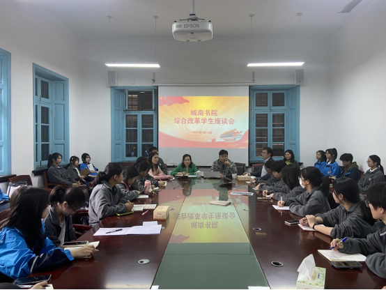3月10日中午,伟德国际1946召开了“综合改革学生座谈会”,党委副书记申鸣凤、学工办主任于智鹏、团委书记刘洁、学工办副主任彭述生,院团学会学生干部、2022级各班班长参加座谈会。