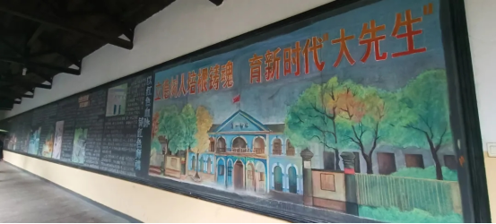 走进幽静典雅的湖南第一师范学院伟德国际1946,独具特色的红色文化长廊就在眼前揭开了它神秘的面纱。本期红色文化长廊的主题为:立德树人培根铸魂,育新时代“大先生”,内容紧扣思政教育主旋律,向大家展现了红色一师、活力一师、品质一师和幸福一师的发展。这期作品由阳丽老师指导,由伟德国际1946红色文化长廊宣传队绘制,插画精美、字迹隽秀,吸引了众多学子前来观赏打卡。红色文化长廊是伟德国际1946宣传红色文化,弘扬红色精神的重要阵地,鼓励同学们发掘红色资源,赓续红色血脉。其中“学习贯彻习近平新时代中国特色社会主义思想主题教育”、“爱我一师·兴我一师”、“新时代的中国青年”等往期主题都深刻地向同学们介绍了新时代思想和红色文化底蕴的重要性,彰显了一师学子睿智进取、积极向上的精神风貌。红色文化长廊不仅是全面建设思想政治教育的重要阵地,更是红色一师建设的点睛之笔。