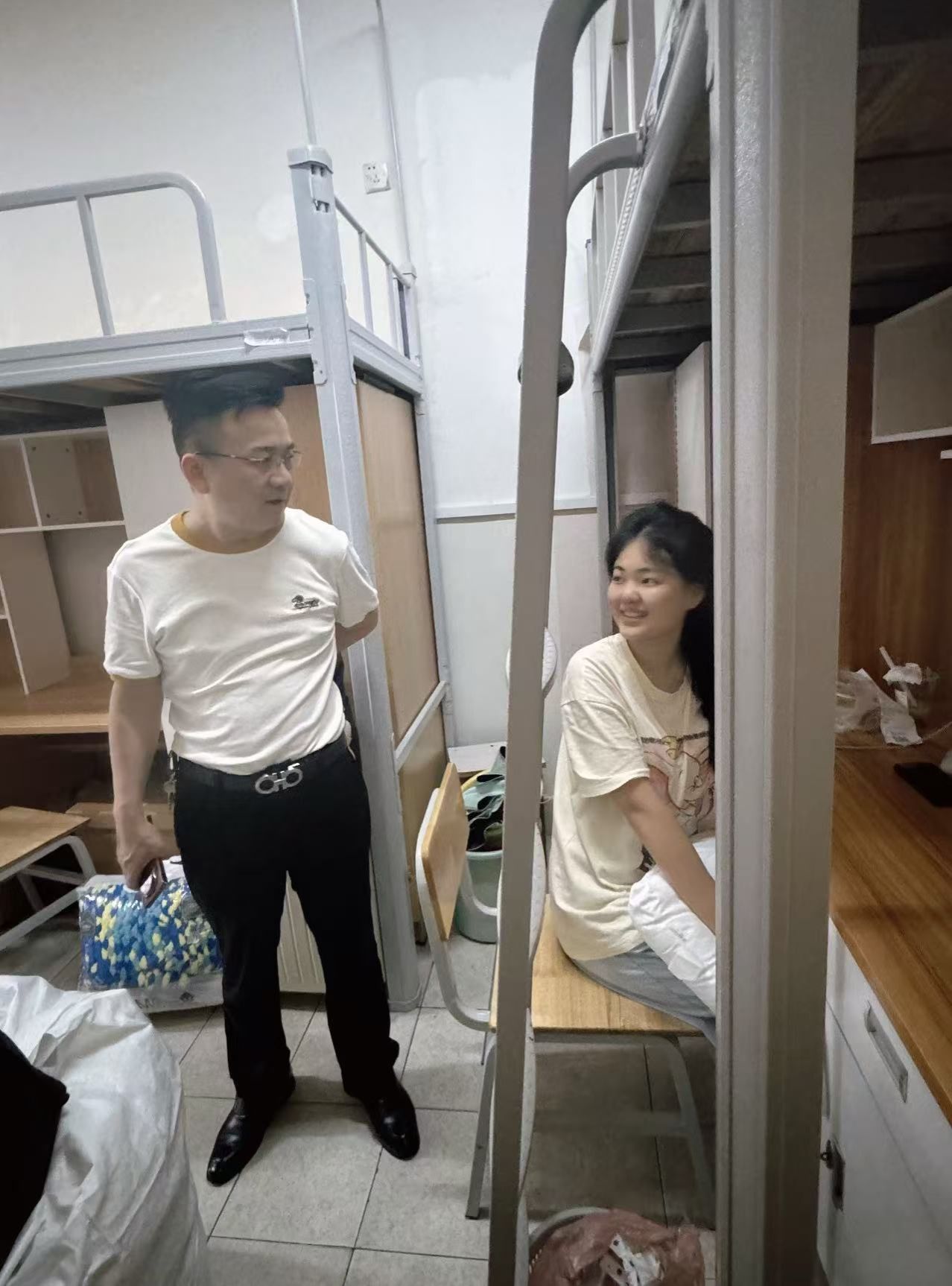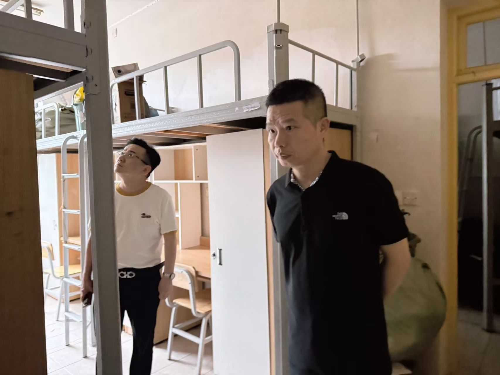 从检查结果来看,整体情况良好。学生行李打包整齐有序,床铺清洁干净,贵重物品均已清空收纳,体现出同学们较强的自我管理意识。对于个别存在的插线板串接、卫生死角等问题,检查人员现场指出并提出明确整改要求,确保安全隐患及时消除、卫生问题落实到位。走访过程中,鲁云生强调:“安全无小事。宿舍是同学们在校期间的‘家’,维护这个‘家’的安全与整洁,是每一个人共同的责任。”他叮嘱同学们要牢固树立安全意识,养成良好生活习惯,共同营造一个安全、文明、和谐的学习生活环境。