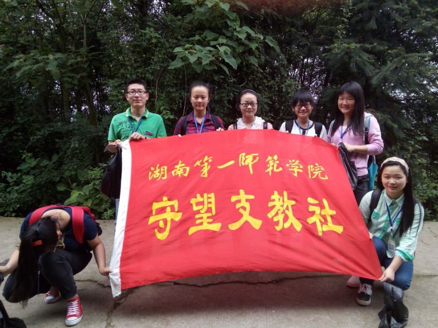 守望支教社守望支教社于2007年5月成立,是关注留守儿童、支援农村教育为目的的非官方非盈利性志愿者组织。社团以“即使没有能力去改变,也有责任去关注,关注的本身也许就是改变的开始。”为理念。努力实践"学高为师,德高为范"这一教师准则。积极利用师范类院校资源、组织支教队,联合湖南各所高校,共同耕耘于贫困山区。我们开展了爱心班级活动,为了让更多的同学能用自己的实际行动帮助到湘西贫困小学生,我们发展爱心班级,班上每个同学每个月节约一块钱用来帮助西部面临失学的儿童; “一帮一”活动,前一个“一”可以是一个年级、一个班级、一群同学、一个寝室的所有室友甚至是单个的一个人对“守望者档案”中的一位家庭贫困但热爱学习、品学兼优的小学生的实质性的帮助。2007年10月—2013年10月,发展了187个爱心班级资助湘西贫困小学生。大量书籍文具下放至湘西各小学学生手中。在每年的3月份和11月份我们都会下乡为那些贫困学生发放“爱心基金”。至2013年共发放基金12498.6元,受资助学生近百名之多。暑假支教。为支援贫困地区的教育事业的发展,缩小城乡间的差距,关注留守儿童。发扬无私奉献精神。培养和提高大学生的实践与管理能力。我们每年暑假都会组织支教团队赴贫困农村开展教育教学工作。从2007年的贵州茶花村开始,至2013年我们已派出573名支教志愿者,赶赴湘西、江西、株洲茶陵、怀化等地。支教是一项需长期坚持的公益活动。山村里贫困的不仅仅是经济,孩子们缺乏的不仅仅是知识,还有关爱。愿我们的“手”撑起孩子们的希望 茶话会。本社团每半个月定期开展茶话会活动,活动主要的目的在于成员与会员之间增进感情,进一步的交流与沟通,学姐学长与成员会员之间讨论工作经验和教育方法,及分享教学经验。同时分享零食,观看爱心影片,从会员当中提取和细数对守望发展的意见和建议。讲座。守望支教社开展主题的讲座,并诚挚邀请老师作为主讲嘉宾,与同学们热情互动,畅谈‘理想和行动’的理念,向同学们论述理想和梦想的差距,在现实生活中追求理想又该付出怎样的行动,让同学们受益匪浅。团培活动。请新校区的学长学姐讲授支教经验,,让更多人了解守望,支持守望,消除长期以来大家对守望资金问题的质疑及误解。号召更多人加入奉献爱心的队伍,同时为后期的支教选拔做铺垫。支教队员选拔。为响应暑假贫困山村大学生志愿支教活动,开展支教队员选拔过活动,志愿生凭报名表进行面试,给学生们提供一个可以锻炼及考验自己的平台,扩大守望支教社的影响。 爱心班级。发动同学们进行爱心捐款。守望支教社会在学期末,评选出积极参与活动的“爱心班级”,予以颁发荣誉锦旗。该活动为湘西孩子们筹集到了更多的助学金,并引导同学们关注贫困地区的孩子,关注支教事业,培养社会责任感和奉献精神。