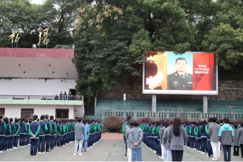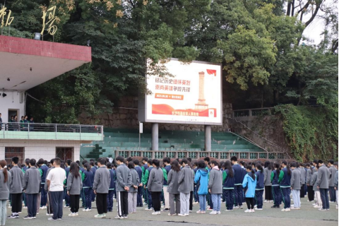 操场上,全体师生列队整齐,全体师生合唱中华人民共和国国歌,气氛庄严肃穆。随后,全体师生向先烈们三鞠躬,向先烈们默哀三分钟,缅怀英烈,寄托了我们对先烈们的无限哀思和崇高敬意。