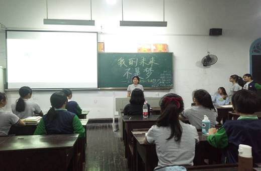 本次心育课由破冰游戏、跳出你心中的高度、制定目标、合理分配时间、学习经验分享五个环节组成。首先为确保此次心育课顺利开展,由各班心育委员介绍团体规范,然后主持人引入本次心育课的主题:“我的未来不是梦——激发学习动机”。随后的“破冰游戏”活跃了现场气氛,激发同学们对心育课的兴趣,促进了班上同学们之间的交流;“跳出你心中的高度”使同学们明白要给自己更多机会,去努力追逐自己内心的高度,不能局限于小小的高度,自己创造机会;“制定目标”帮助同学们确定自己的长期目标,学会分阶段实现自身价值。“合理分配时间”则使同学们知道时间的短暂,并学会合理利用有限的时间做更多有意义的事;“学习经验分享”让同学们互相交流学习方法与经验,掌握求助与助人的技巧。