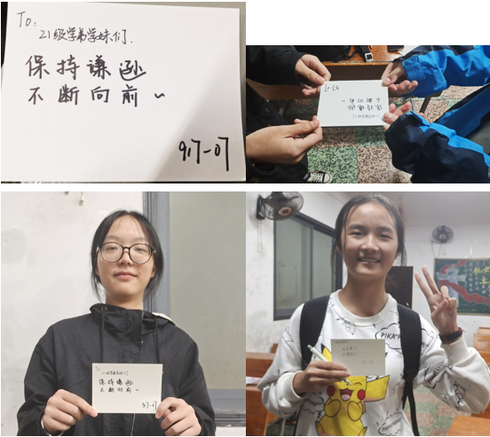 2021年10月7日至10月8日,第二板块“爱的传递”落下帷幕。这个活动是由大二的学姐学长写下心灵寄语,然后送给大一新生,祝福他们身心健康,激励他们不断努力,更体现了学姐学长对新生的关怀和爱护,希望他们能顺利成长为城南的新力量!