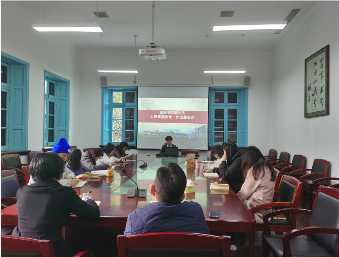 20211123日下午,我院于前楼会议室举办了辅导员心理健康教育工作主题培训,主持伟德国际1946党委工作的鲁云生副书记、党委副书记申鸣凤及全体学工人员参加。培训重点在于提升辅导员对心理健康教育工作的重视程度,同时提供可操作的实用技术。此次讲座由教育学院朱丹副教授主讲,心理健康教育中心颜雅琴主持。