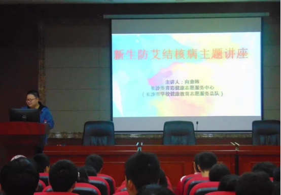 分析了艾滋病对身体健康、就业、经济、心理、家庭五大方面的影响。同时向同学们介绍了如何科学预防艾滋病。最后,向愈韩还向同学们介绍了一些预防结核病的知识。