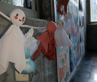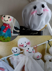 每班至少上交5个纯手工制作的晴天娃娃。同学们都自主准备了制作晴天娃娃的材料。心育组共收到了两个箱子两个袋子多的晴天娃娃,同学们利用口罩、卫生纸、绳子等物品制作晴天娃娃,用各种颜料为它画上了可爱的小表情,加上了一些小装饰,大家风格迥异制作了许多可爱的晴天娃娃,这些晴天娃娃仍交给守望支教社的相关负责人,由他们将这份温暖送给乡村的孩子们。
