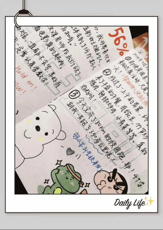 让我们一起共同欣赏以下同学的优秀成果。他们的记录都有一个共同点:为每天的记录精心准备了一个本子,在纸上进行了一定的装饰、一些积极向上的正能量小便签,再加上令人赏心悦目的插画。这不仅反映了他们对本次活动的认真态度,而且也更能体现他们当时美好的心境,这也是本次活动真正意义的另一种反映。