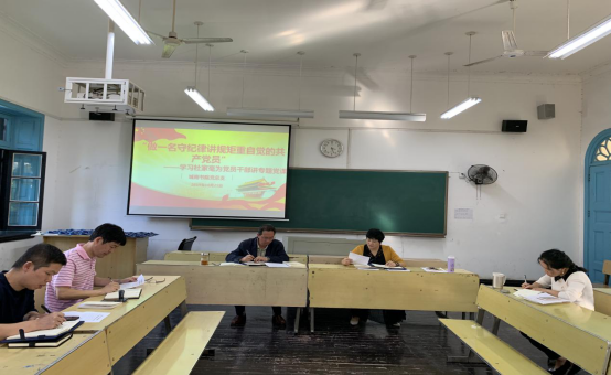 伟德国际1946党总支为更好的开展“不忘初心、牢记使命”主题教育,10月21日下午两点,党总支委员在明道苑201教室召主题教育学习活动,集体学习杜家毫书记在省委党校为党员干部讲授的题为《做一名守纪律讲规矩重自觉的共产党员》的党课。此次学习活动由党总支书记邹华秀领学。