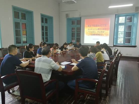 2019年9月25日下午,教工党支部在前楼会议室组织召开“不忘初心、牢记使命”主题教育推进会。