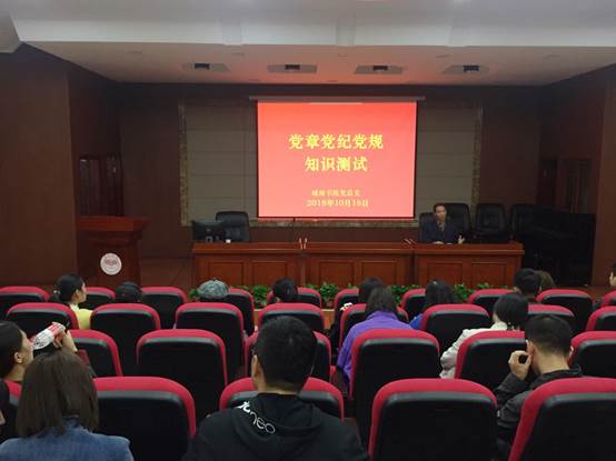 为深入学习贯彻党的十九大精神和中央、省纪委全会精神,深化“两学一做”学习教育常态化制度化,抓牢抓实党风廉政学习教育,促进全体党员进一步增强党章意识、纪律规矩意识。根据学校党委统一安排,我院党总支于10月16日下午在图书馆报告厅举行党章党纪党规知识测试,学院全体党员参加。
