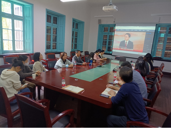 10月16日中午,伟德国际1946教工党支部在前楼会议室集体收看党的二十大开幕会,认真聆听了习近平总书记在大会上的报告,并在收看完开幕会后开展集中研讨学习。