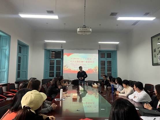 陈颖卓主讲题为《二十大党章的30个重要修改》的微党课,从中国共产党章程基本概述、党的二十大修改党章的重大意义、党的二十大关于党章(修正案)决议、二十大党章的30个重要修改四个方面层层递进,详细解读了二十大党章修改的核心内容和重大意义。