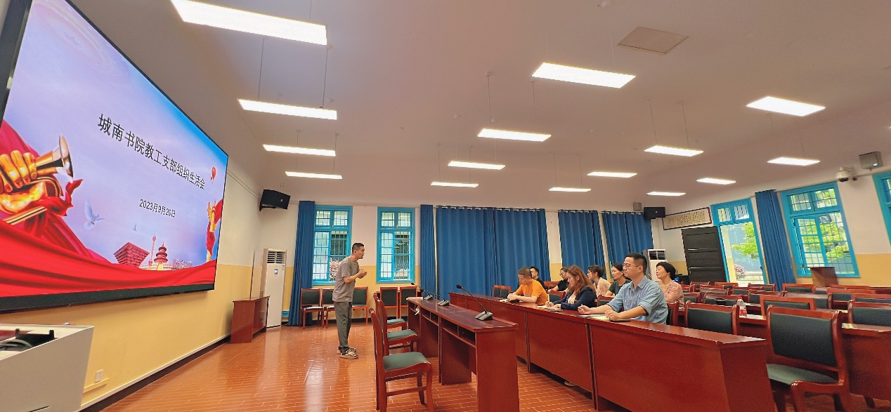 9月20日中午,伟德国际1946教工党支部全体党员在丽泽苑104开展学习贯彻习近平新时代中国特色社会主义思想主题教育专题组织生活会。