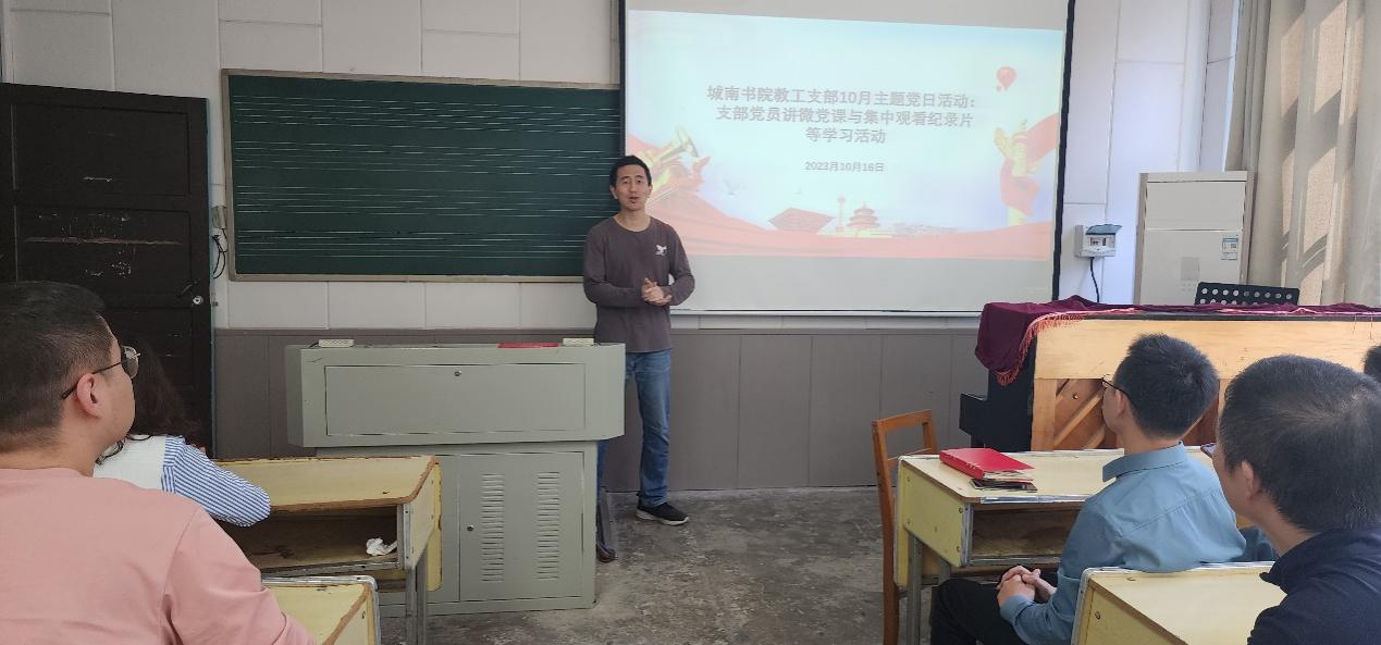 10月16日中午,伟德国际1946教工党支部在艺术楼音乐教室开展10月份主题党日活动,教工支部全体党员参加,活动由支部书记陈颖卓主持。