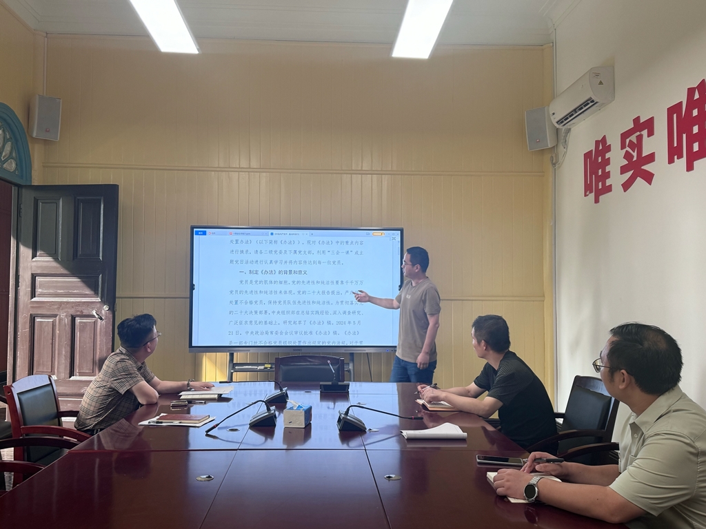 聂凯首先领学《中国共产党不合格党员组织处置办法》(以下简称《办法》)。聂凯阐述了《办法》制定的背景、意义和指导思想,明确了不合格党员的组织处置方式、处置原则、处置程序和审批权限等内容,有助于党员干部进一步增强纪律意识和规矩意识,增强遵守党纪党规的自觉性和坚定性,是深入推进全面从严治党,保持党员队伍先进性和纯洁性,加强党员队伍建设的一项重要党内法规,每位党员都要认真学透,遵照执行。