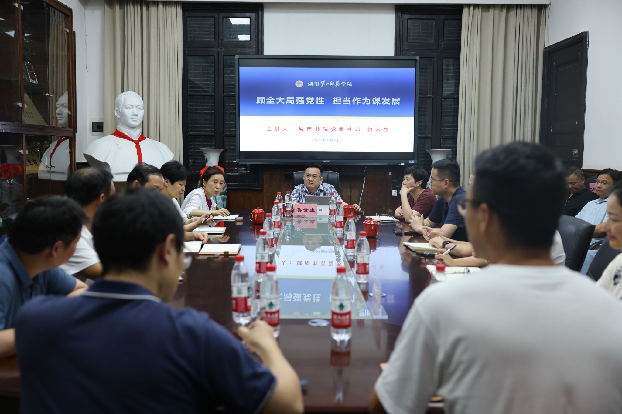6月6日下午,院党委书记鲁云生在一附小开展了一场主题为“顾全大局强党性 担当作为谋发展” 的党课活动。此次党课汇聚了一、二附小校级班子成员、中层管理干部以及外派合作办学学校的校长等30余人,会议由一附小校长方芳主持。