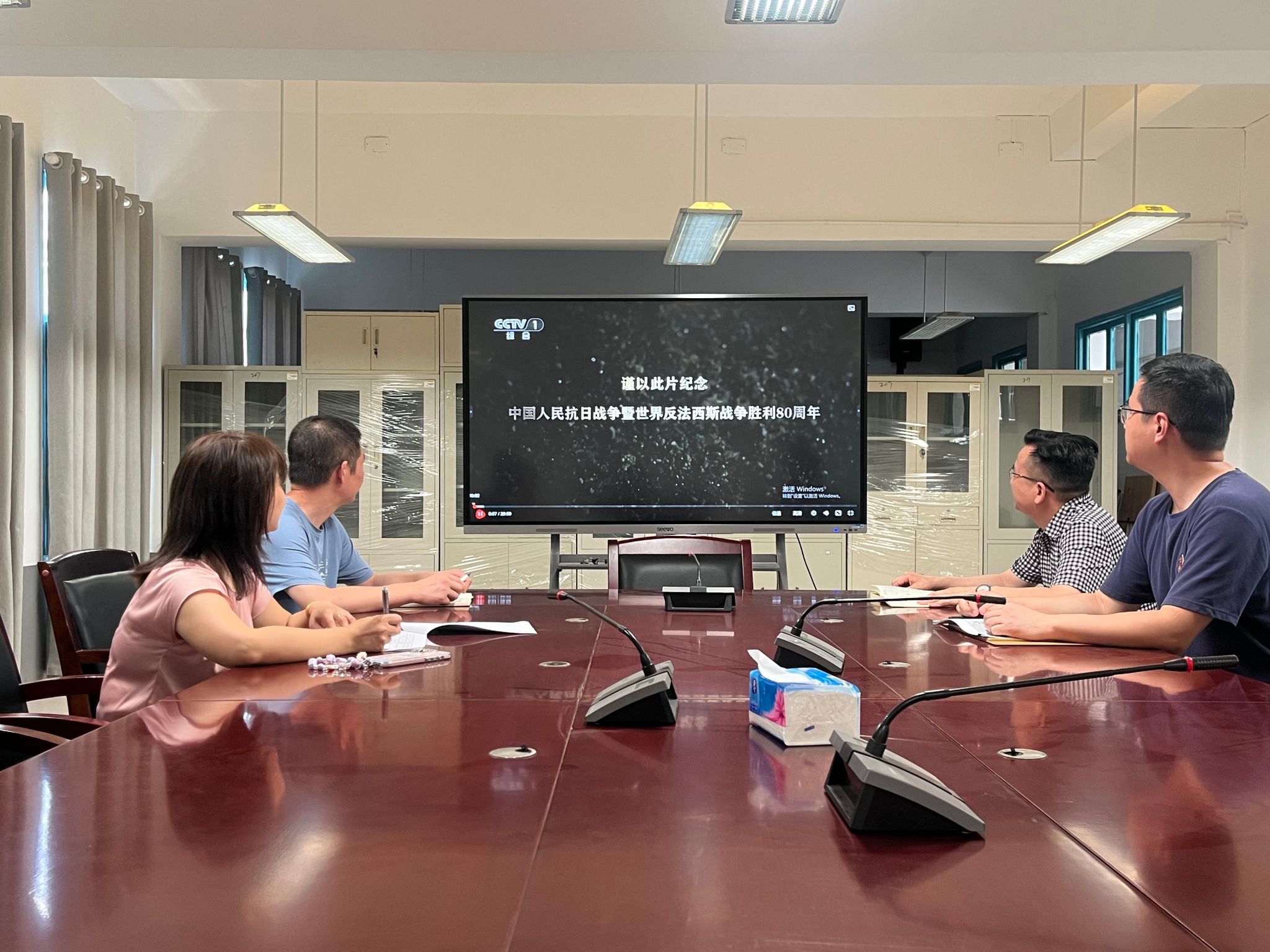 最后,支部全体党员集体观看了大型纪录片《胜利》第一集:《历史深处的回响》。