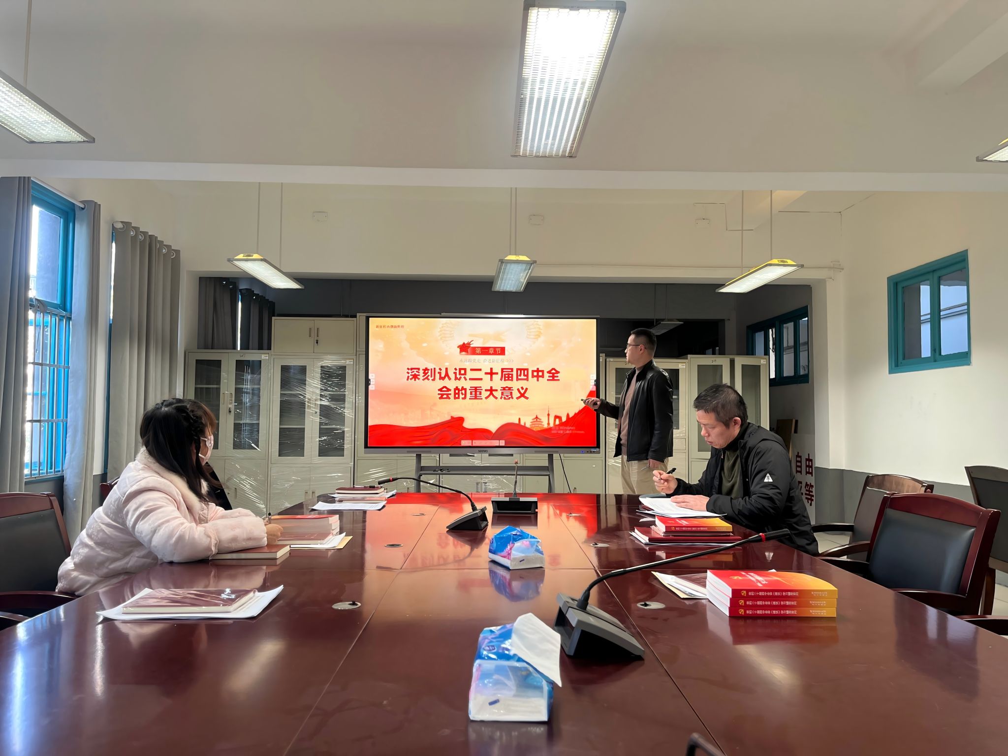 聂凯首先领学了党的二十届四中全会公报;院党委书记鲁云生领学了《中共中央关于制定国民经济和社会发展第十五个五年规划的建议》(以下简称《建议》);院党委副书记蔡海军领学习近平总书记关于《中共中央关于制定国民经济和社会发展第十五个五年规划的建议》的说明。