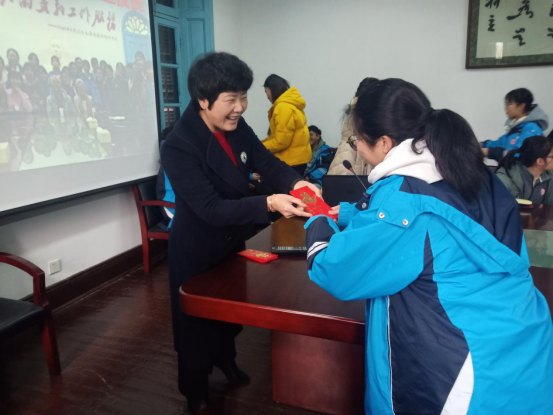 在座谈会上邹华秀转达了童小娇及吴复立夫妇对同学们的殷切希望,希望每一位同学在校认真学习,强化自身技能,毕业后成为一名优秀的人民教师。座谈会结束之际,由邹华秀书记、申鸣凤副书记将吴复立夫妇对孩子们的奖励慰问逐一发放给参会的学生,并叮嘱同学们一定要牢记吴教授夫妇的嘱托,不忘求学问道初心,担起兴教育人使命。孩子们对吴教授夫妇的关心纷纷表示感谢,表示在新的一年里一定坚守自己的理想信念,扎实向学,为自己以后的职业道路打下坚实的基础。