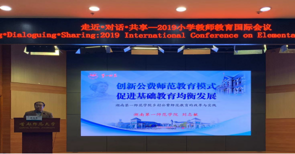 本次会议共有来自美国、日本、芬兰等12个国家和地区的300余名学者出席,顾明远、任友群、彭恩霖等45位国内外著名教育专家分别在三个论坛开展讲座。我校刘志敏教授做了《创新公费师范教育模式,促进基础教育均衡发展——湖南第一师范学院乡村公费师范教育的改革与实践》为题的主场报告,分析了当前我国乡村小学教师培养过程中存在的问题,提出了“初中起点、六年一贯;综合培养、分项发展;三性融合、三位一体;实践导向、师德为先”的初中起点六年制本科优秀小学教师培养一师模式,有效解决了乡村教师“下不去,留不住,干不好”的问题,为国内外乡村教师队伍培养提供了借鉴,受到大会一致好评。