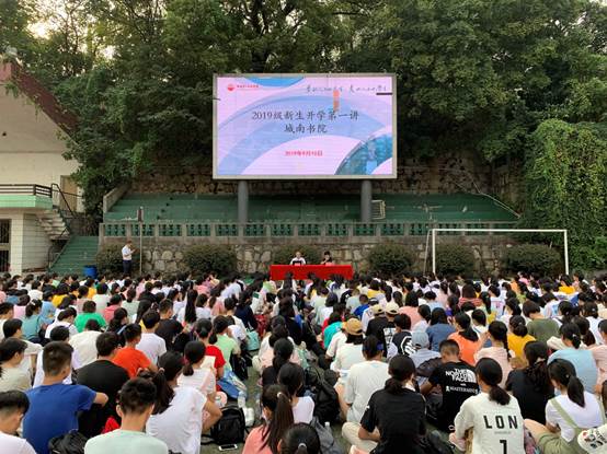 9月10日上午,校党委书记彭小奇在伟德国际1946校区运动场为我院2019级新生上开学第一课。学院党政负责人、辅导员及全体新生聆听了讲课,讲课由院党总支书记邹华秀主持。