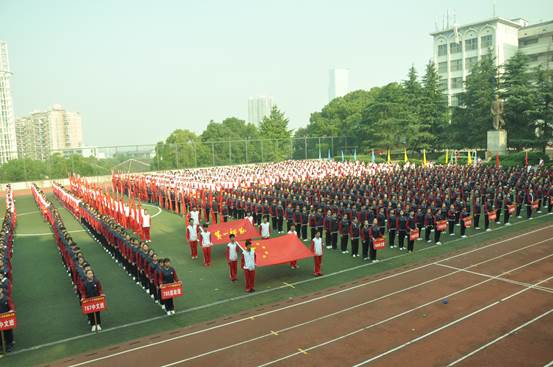 伴着激昂的运动员进行曲的奏响,国旗、校旗、院旗、班旗方阵、彩旗方阵、60个班级方阵、裁判员迈着整齐的步子依次入场,他们整齐划一的动作、千变万化的队形、声音嘹亮的口号赢得了领导的阵阵掌声。全体起立奏唱国歌后,副校长刘宇教授为开幕式致辞,他表示希望全体裁判员认真细致、公平公正,希望全体运动员秉承奥林匹克精神,全力以赴,并祝此次运动会取得圆满成功。随后,794体育班喻佳佳、793体育班陈林俊分别代表全体运动员、全体裁判员宣誓。而后校长童小娇教授宣布2017年田径运动会开幕,最后2016级学生表演了广播体操“七彩阳光”,2017级学生表演武术健身操“旭日东升”。