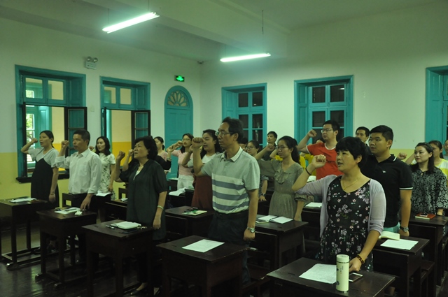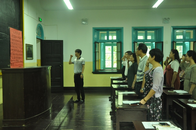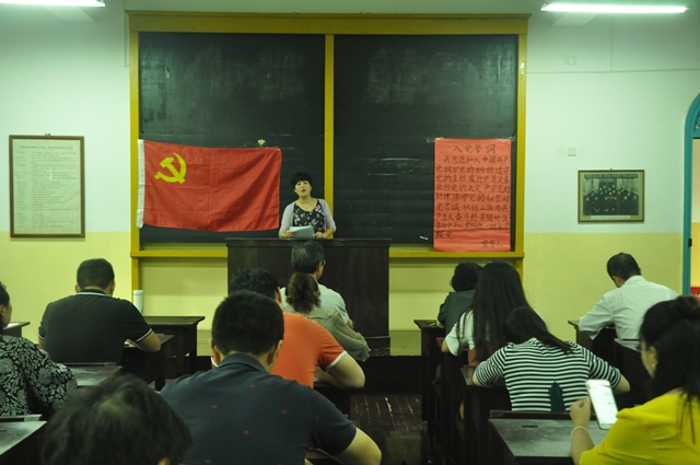 活动上,党总支组织委员刘大维带领全体党员重温了入党誓词,号召全体党员牢记入党初衷,争做合格党员。党总支副书记邹华秀为全体党员上了一堂题为《做一名“讲奉献,有爱心”的教育工作者》的党课,从“要有公而忘私的追求,把学生利益放在首位、要有敢于担当的精神,把学生成才当作首要任务、要有求真务实的作风,把献身教育事业当作自己的追求”三个方面生动讲述了“奉献和爱心”对于一名教师共产党员的重要性,号召大家要发挥党员模范带头作用,始终保持干事创业作风,把立德树人作为主要任务,为培养优秀小学教师作出自己的应有贡献。党课后,各支部在支部书记的组织下进行了学习讨论,老师们纷纷表示要将“讲奉献、有爱心”落实到今后的教育工作中去。