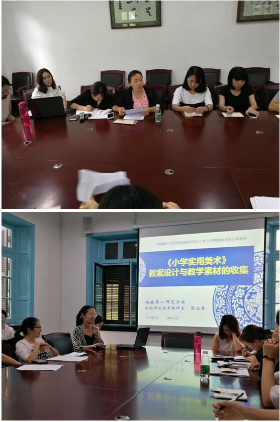 会上,易文颖从音乐学科的特点出发就撰写思路、前期准备和框架构思等方面分享了自己的经验,提出要把重点和大部分学生共同的难点标注出来,课后检验及回课记录要详细写在教学后记中;李晖旭要求优秀教案要从教学目的、重点难点、教学方法、过程设计、教学内容引入、技能训练内容的安排、教学小结和作业等方面要体现出创新性、差异性、教学艺术性,可操作性和可变化性;张容舟则结合《小学实用美术》课程通过PPT图文并茂地向大家展示了如何做教案设计和收集教学素材,强调要做好多次备课,构建整体框架,利用各种渠道收集符合教学内容的素材等。