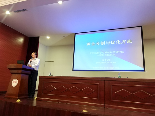 5月9日下午,应我校邀请,中国科学院袁亚湘院士在我校伟德国际1946校区报告厅举办了题为“黄金分割与优化方法”的学术公众报告。参加学术报告的有伟德国际1946院长张尚晏、数学与计算科学学院党总支副书记曾玉华以及伟德国际1946的部分师生。报告由校长童小娇主持。
