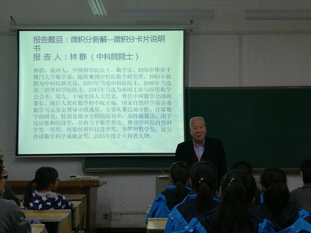 林群院士首先介绍了数学发展史上两次最大的创造:平面几何和微积分,并解释了为什么微积分难以掌握的原因,然后阐述如何通过微积分小卡片提炼微积分,变成一个假设一个定理,列成一张表,从而更加容易理解微积分。最后,林群院士与学生们进行了亲切互动,解答了大家在数学学习中的疑惑。
