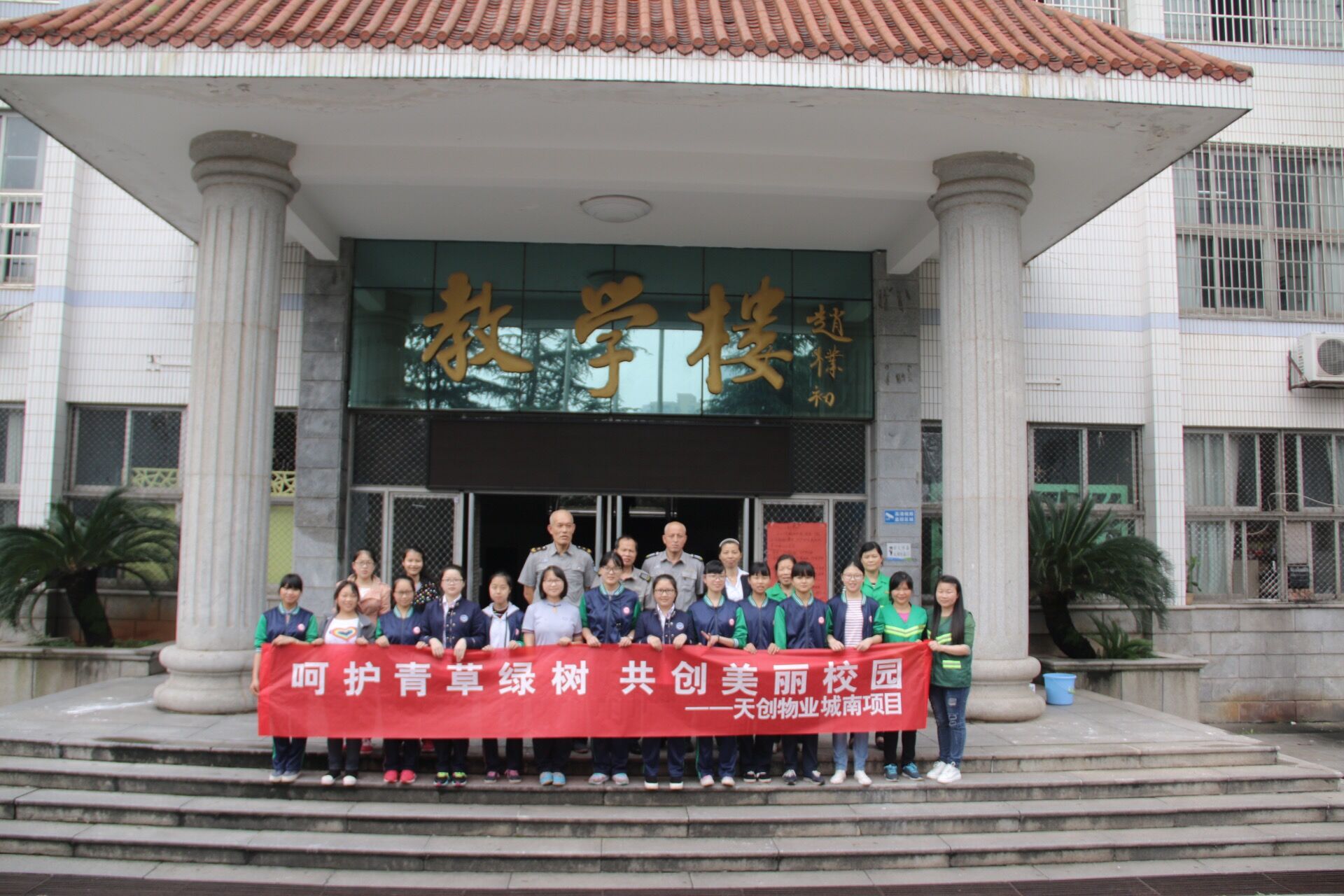 为了增强广大同学的环保意识及生态意识,建设美丽校园,5月27日下午,我院750英语班15位同学及天创物业工作人员在校园里成功开展了“爱绿、护绿、创绿”优质服务月活动。此活动由天创物业第一师范城南校区项目部策划及开展,天创物业经理赵家峰女士与我院保安队队长刘春华到现场进行指导。