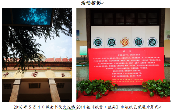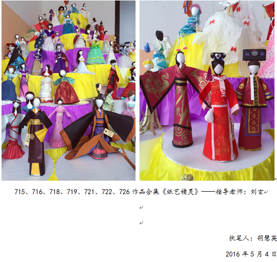 在5月4日“青年节”这天,由我院美术教师胡慧英、刘玄老师组织的2014级“纸赏·致尚”师范生纸艺联展在图书馆举行。我院顾问雷庆娥书记、邹华秀副书记、潇湘晨报旗下杂志《十几岁》编辑胡彬琨老师、美术教研室全体老师及学生代表出席了开幕式。校党委副书记刘志敏一行参观本次展览后给予了高度评价:定向师范生创作出这样高格调的作品很不简单,这样的展示活动值得推广。