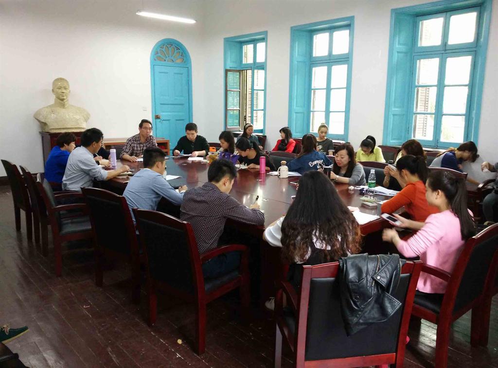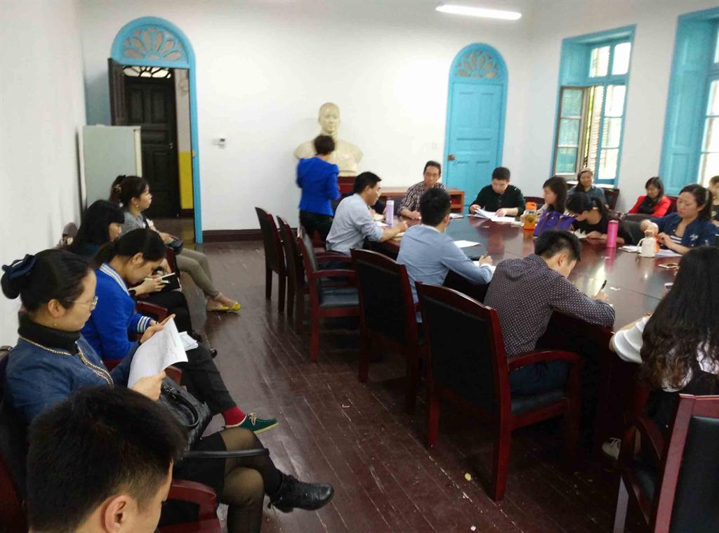 张尚晏院长首先向全体教师通报了学校近期出台的一系列规章制度,包括《湖南第一师范学院章程》、《学生课堂行为规范》、《教师课堂教学行为规范》、《课堂教学末位淘汰制》等,尤其对末位淘汰制度进行了重点解读,要求老师们要引起高度重视,认真对待督导听课,认真上好每一堂课。随后,张院长简要通报了4月15日学校本科教学评估反馈会议的有关情况。