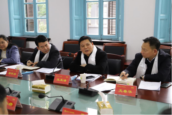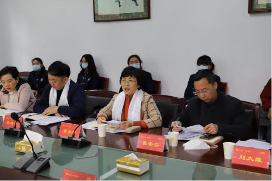 座谈会开始之前,我校西藏班学生向前来慰问的领导老师献上洁白的哈达,祝愿老师“新年快乐,扎西德勒!”。座谈会上,文春华向与会人员传达了相关文件精神;童小娇从学校对西藏班重视情况、精细管理措施、人文关怀安排以及推进汉藏民族一家亲举措四个方面进行汇报,并就我校寒假期间相关安排及疫情防控措施做了详细讲解;望城一中校长刘宇从西藏班办学情况、寒假安排和疫情防控工作做了汇报。