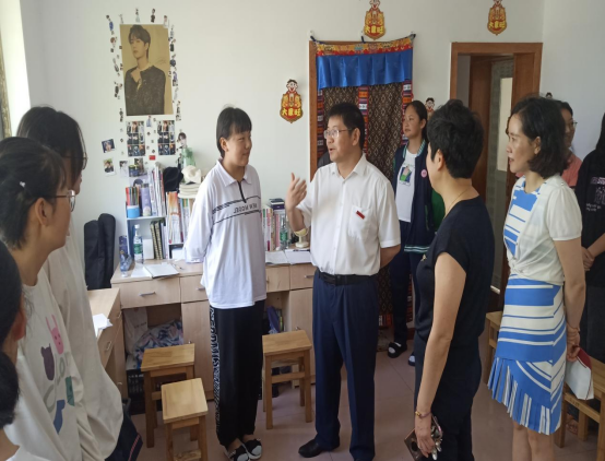 罗成翼书记还进到西藏班宿舍,看望慰问了西藏班师生,与同学们进行了亲切交流。他强调同学们在校学习期间不仅要学好课本知识,还要注重对湖湘文化的学习,用湖湘深厚的红色文化底蕴来浸润自己的精神世界。他嘱咐同学们要不断锤炼自己的品行,要修好人际关系这门人生必修课,积极融入到学校开展的各项活动中去,与汉族同学营造一个团结互助的友好关系。他希望同学们要珍惜来一师求学的机会,刻苦求学,为今后西藏教育事业的发展贡献他们青春的力量。