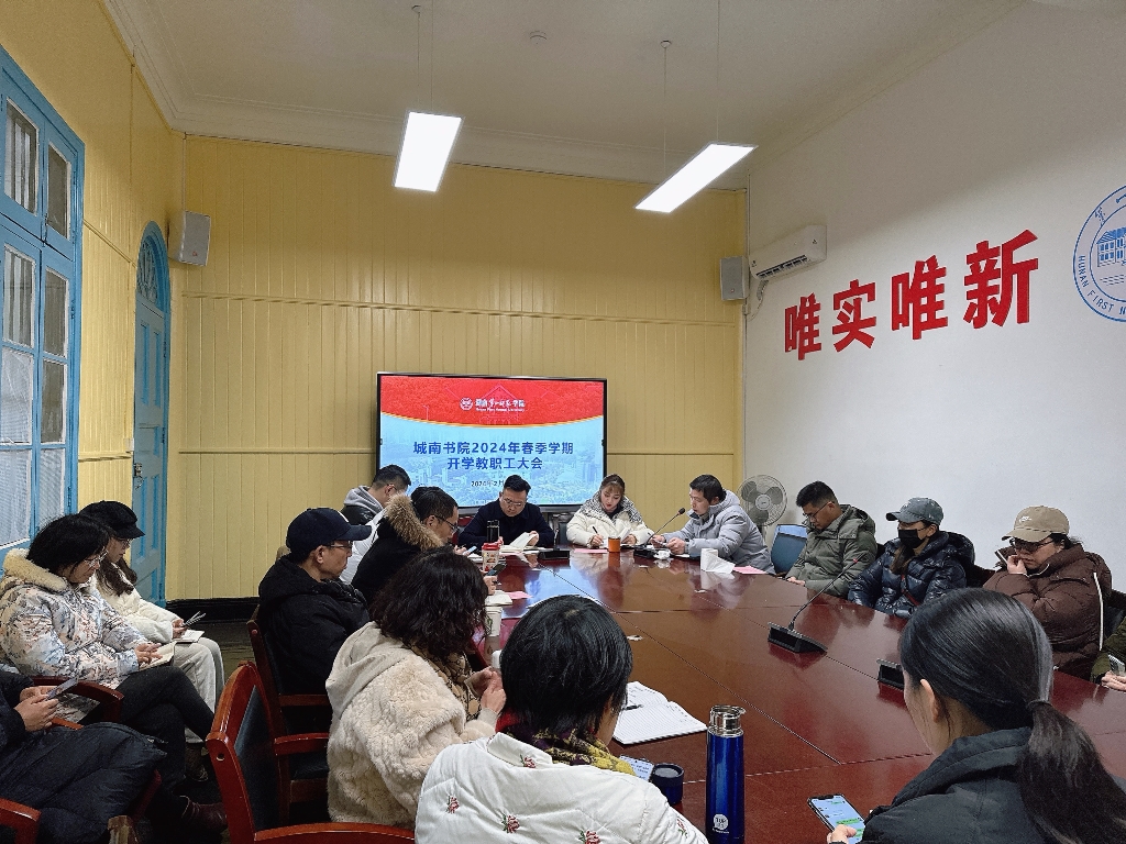 2月23日上午,伟德国际1946在明道苑208会议室召开2024年春季学期开学教职工大会,院党委书记鲁云生、院长张瑞智、副院长蔡海军及全体教职工参加,会议由蔡海军主持。