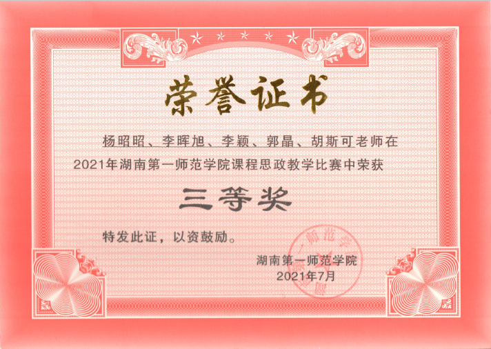 课程思政教学竞赛三等奖
