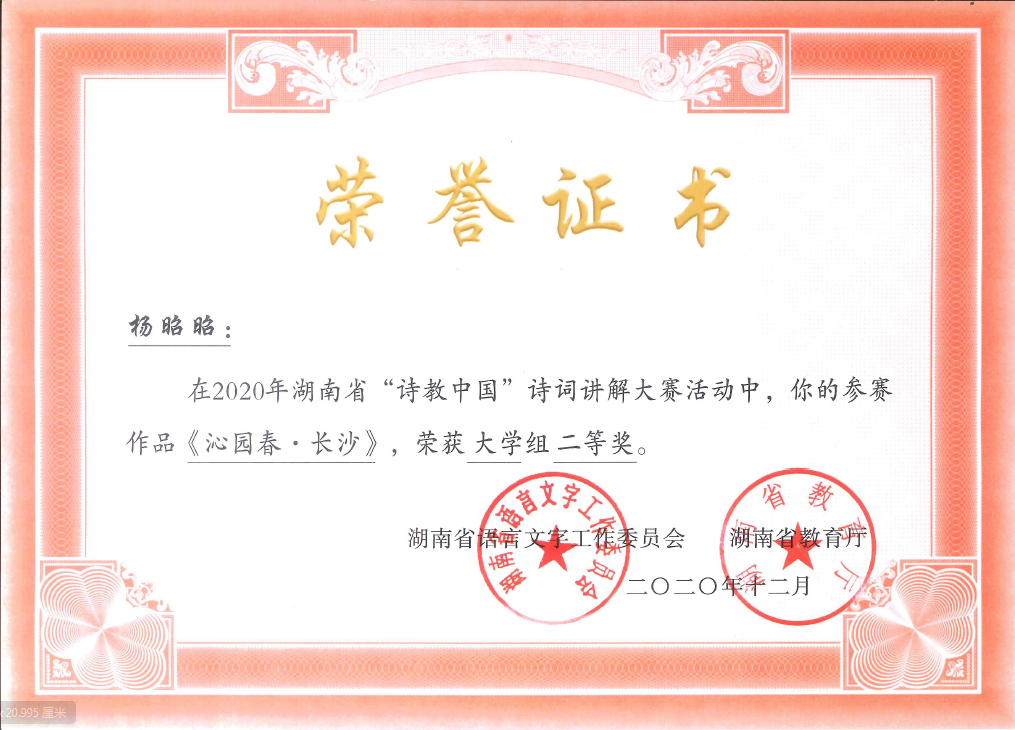 湖南省“诗教中国”二等奖