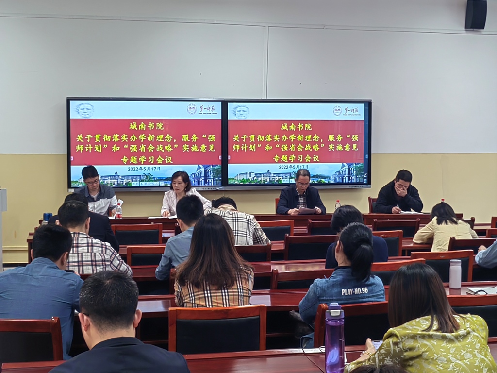 5月17日下午14点,我院在丽泽苑104召开落实办学新理念,服务“强师计划”和“强省会战略”专题学习会,全院教职工参加,会议由刘大维副院长主持。